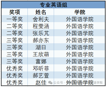 大赛最终评选出各语种一等奖、二等奖、三等奖及优秀奖,获奖名单如下: