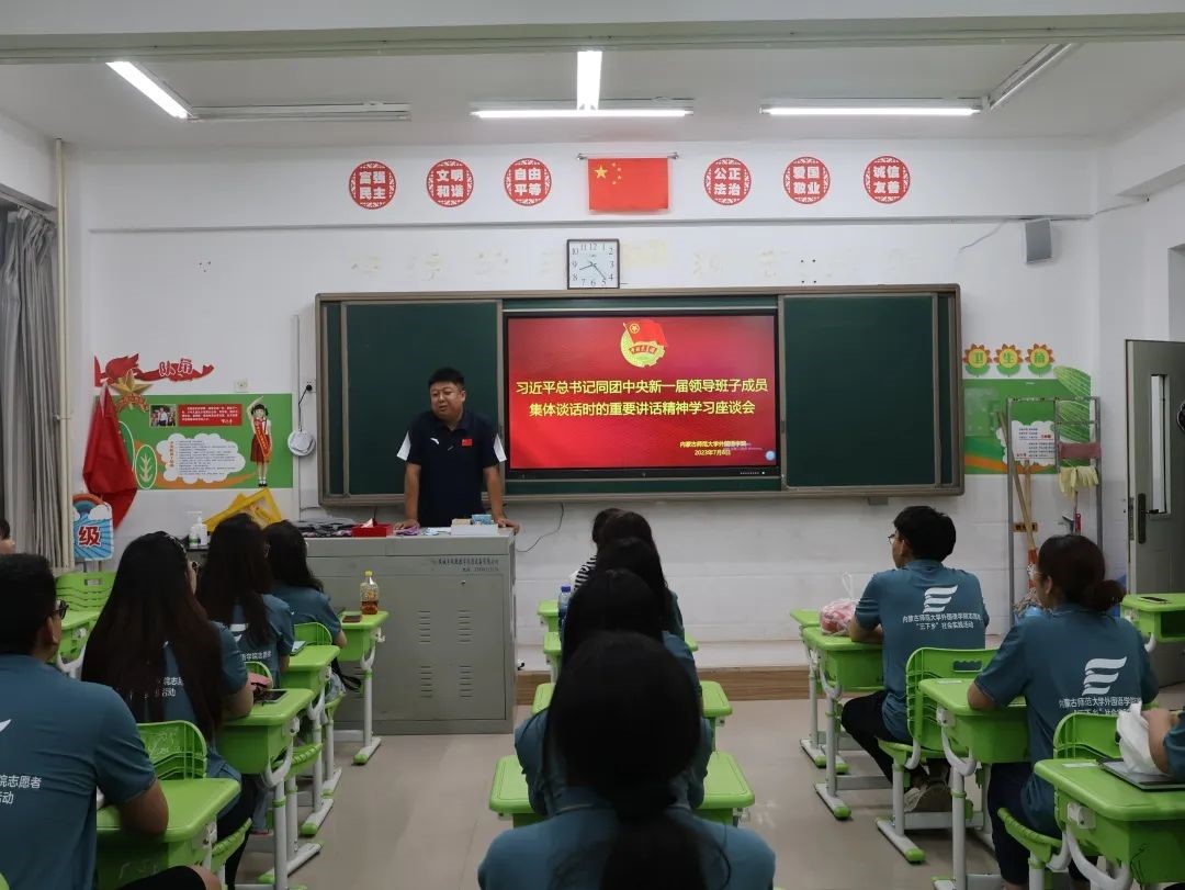 为深入学习贯彻落实党的二十大精神,团十九大精神,牢记总书记对青年志愿者的嘱托,引导我院青年学子在社会实践中“受教育、长才干、做贡献”。我院志愿者服务队于7月8日再次集合到内蒙古自治区呼和浩特市新城区讨思浩小学进行暑期“三下乡”社会实践活动。