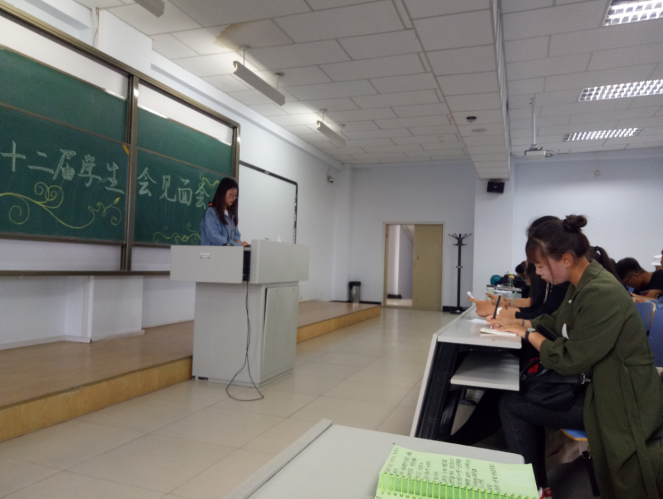 一段简短的开场白过后,主席团成员及各部室部长依次进行了自我介绍,并纷纷表达了对新成员的欢迎与祝贺,希望他们在接下来的工作中能有所收获。干事们也纷纷表示,要珍惜加入学生会的机会,认真学习,认真工作。