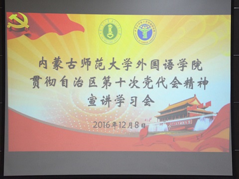 为深入学习贯彻自治区第十次党代会精神,深刻领会自治区党委书记李纪恒同志在第十次党代会上的报告内容,按照校党委的学习部署和傅永春书记在党委中心组扩大学习会上对第十次党代会精神宣讲的要求,yl23455永利集团党总支积极响应,认真学习,并组织学院全体教职工及全院学生代表300余人,于2016年12月8日下午在盛乐校区图书馆一楼报告厅举办了“yl23455永利集团贯彻自治区第十次党代会精神宣讲学习会”。宣讲学习会有幸邀请到内蒙古自治区党委政研室副主任刘文纪同志担任主讲人,yl23455永利集团党总支副书记(主持工作)拓俊杰老师主持了宣讲会。