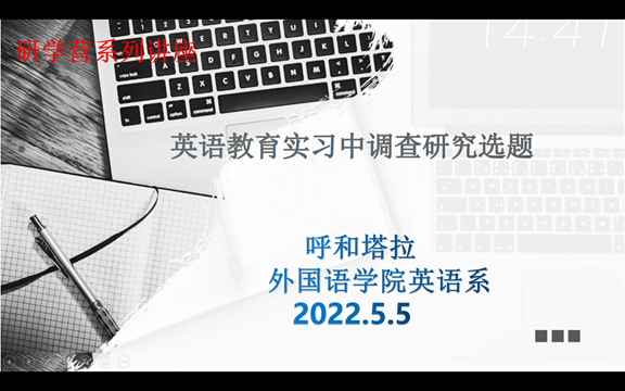 5月5日,呼和塔拉老师主讲第一场讲座,题目为“英语教育实习中调查研究选题”。讲座伊始,塔拉老师从往届实习生在教育实习中所面临的选题上的困惑引入,说明了英语教育实习中调查研究选题中存在的如选题偏大、证据不足、选题陈旧等问题,引导学生重视选题的科学性和前沿性,建议学生关注国家时政热点及相关教育政策改革动态。