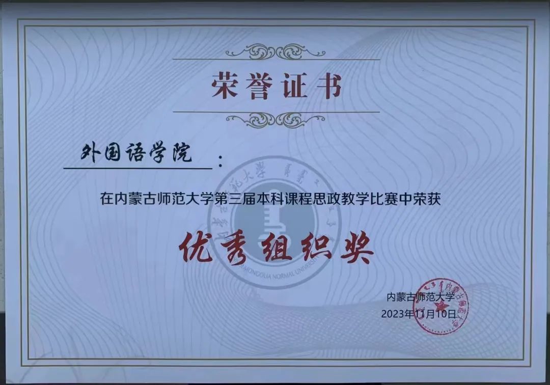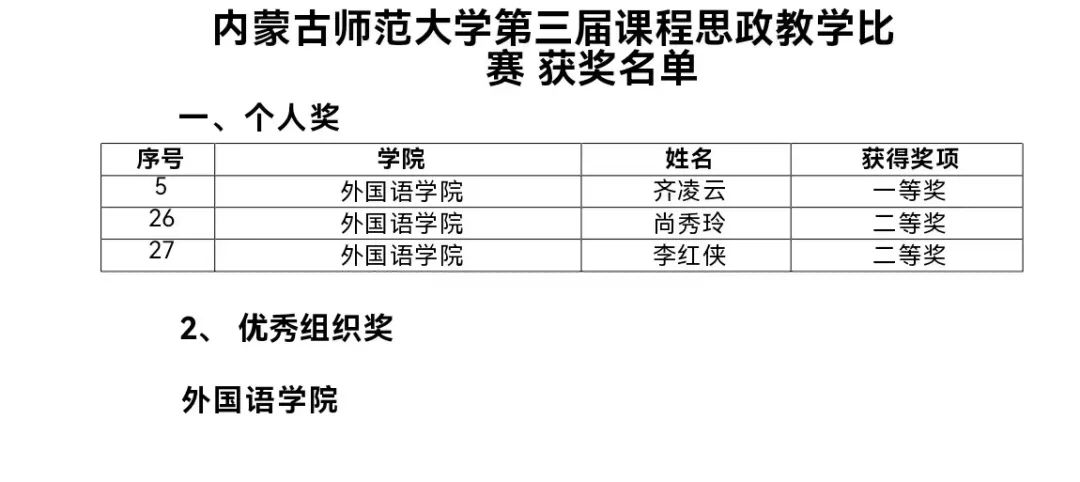 为进一步贯彻落实教育部《高等学校课程思政建设指导纲要》、《内蒙古自治区党委高校工委、自治区教育厅关于推进高校思政课程建设的实施方案》,依据《内蒙古自治区教育厅关于举办第三届全区本科高校课程思政教学比赛的通知》,我院选派教师参加第三届yl23455永利课程思政教学比赛暨全区本科高等学校课程思政教学比赛选拔赛,并荣获多项荣誉。