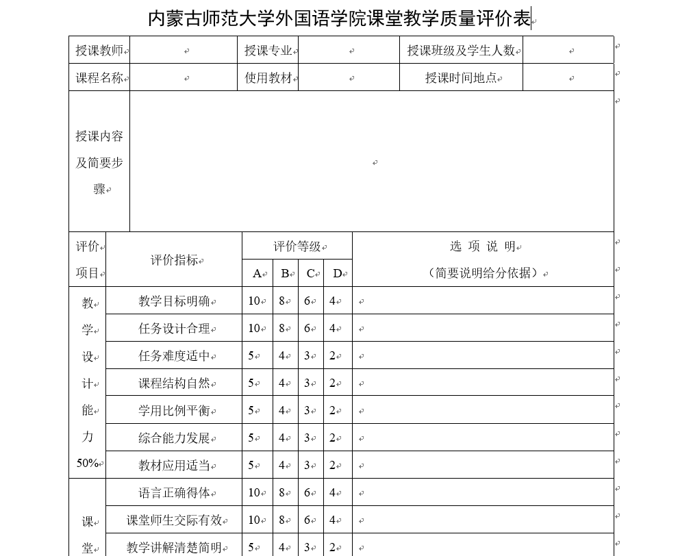 听课记录表