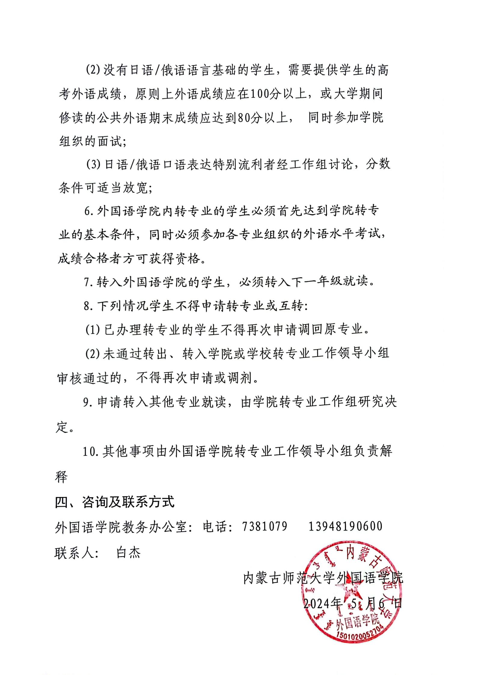 2024年yl23455永利集团本科生转专业实施细则