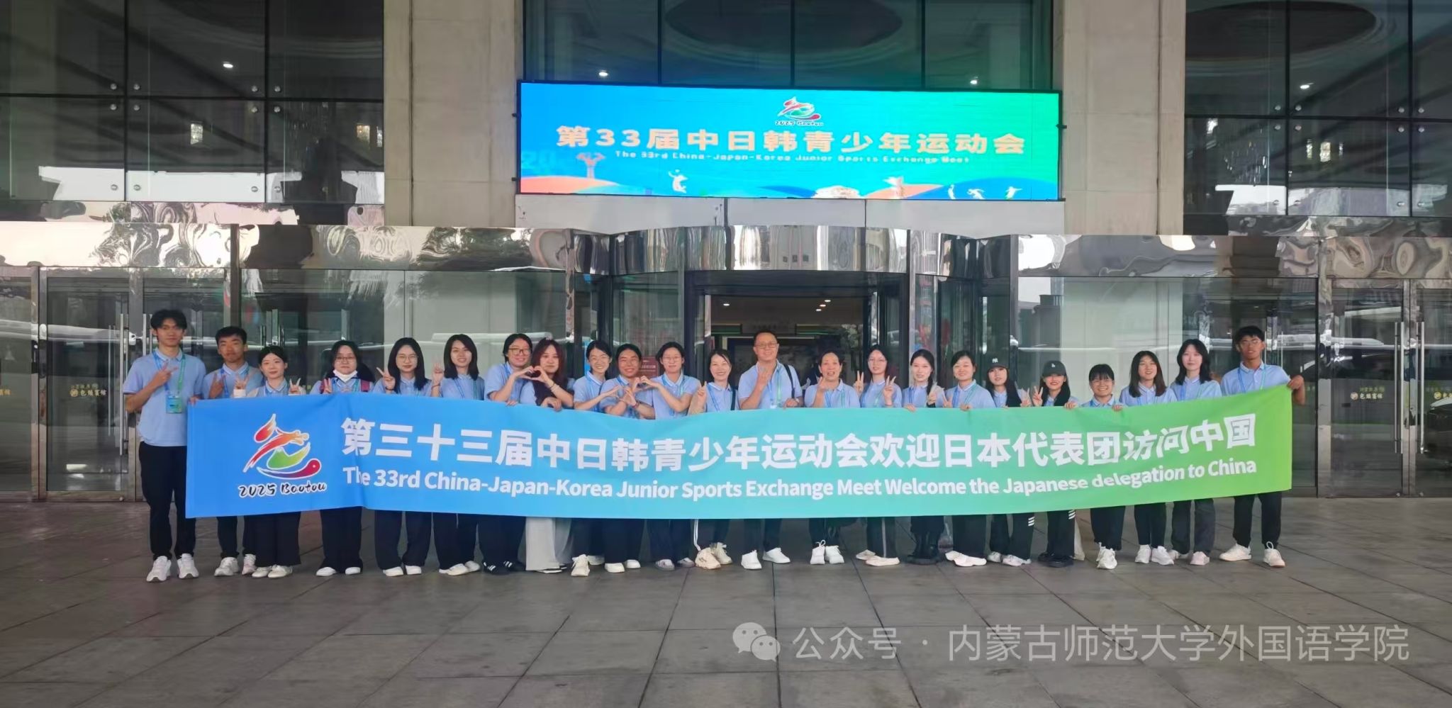 8月23日至29日,第三十三届中日韩青少年运动会在包头举办。学院22名日语专业学子在3名教师带领下,承担沟通翻译工作,为三国运动员与官员搭建交流桥梁,保障赛事有序开展。