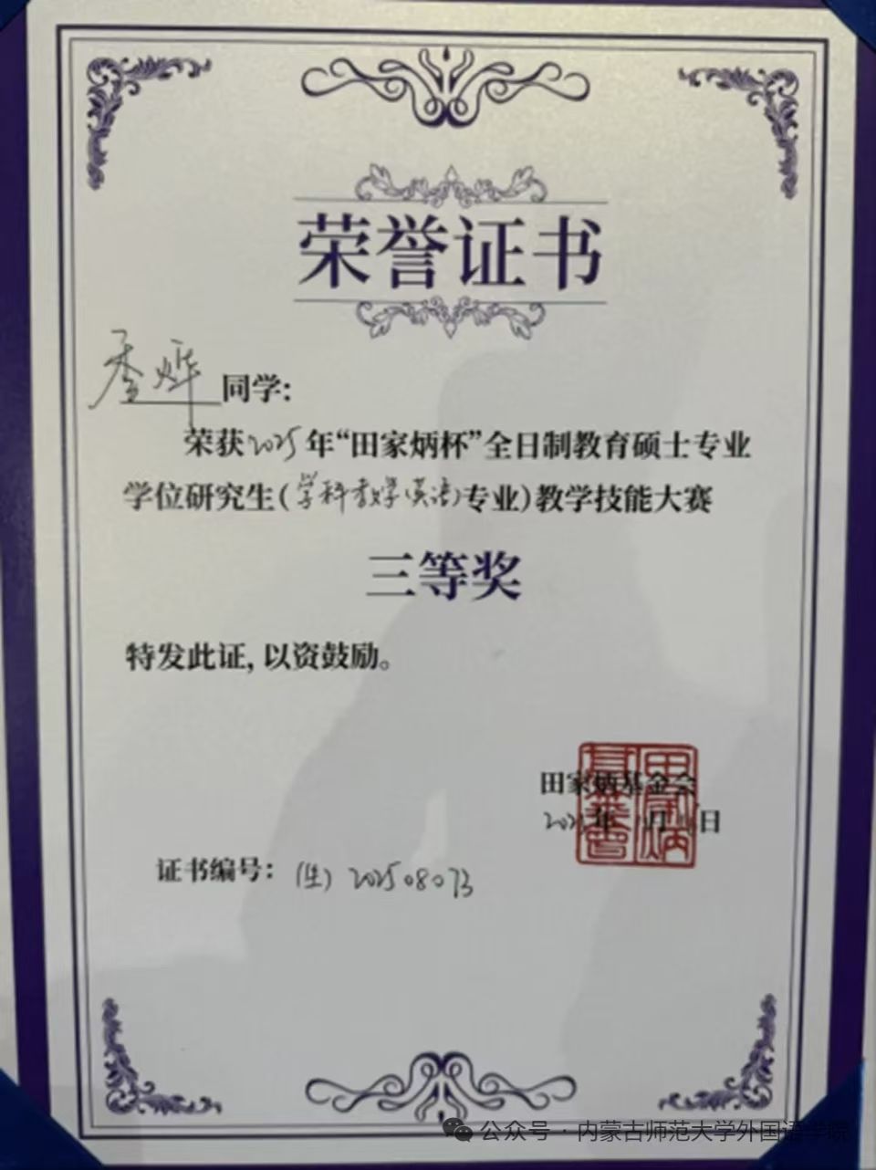 同学在本次比赛中均获三等奖!这一成绩不仅是对我院学科教学(英语)专业学位研究生培养成效的有力印证,更彰显了学院在人才培养道路上