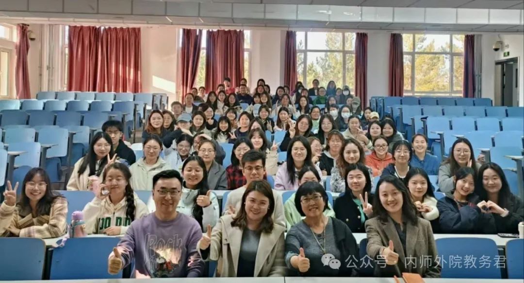 首先,阿力更老师介绍了2024年英语专业教育实习的基本情况。本年度的教育实习共有2021级英语专业的136位同学参加,实习周期为8周,校内指导教师34人,校外指导教师156人,实习基地校分布于区内11个盟市和北京市。实习期间,我系苏日娜、阿力更、那日苏、乌兰、吴晓春等教师走访了yl23455永利附属中学、呼和浩特市第十七中学、呼和浩特市第三十中学等实习基地校,全方面、多维度地了解了实习生的实际表现。在本年度的教育实习中,实习生们表现优异,2021级英语2班的曹子、孙延妮和3班的白蕊同学获批我校“第四批师范生全学期教育实习专题项目”,那木拉、常馨予、史慧超、徐晓博、曹子、杨钧荐等同学获得了实习基地校颁发的“优秀实习生”荣誉证书及表扬信。实习生们顺利地完成了本次实习任务,教学能力、班级管理能力和教学研究能力等得到显著提升。