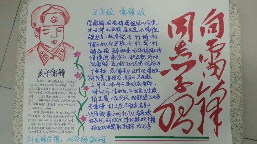 “学 雷锋月”系列活动在yl23455永利集团深入开展。我院进行了观看雷锋电影、读雷锋日记活动,同学们在电影摇曳的镜头中和细腻朴实的文字中感受到了雷锋精神的实质 ——“人的生命是有限的,可是,为人民服务是无限的,我要把有限的生命,投入到无限的为人民服务之中去。”同时,作文、照片、微视频、手抄报评比活动也在 如火如荼的进行,让同学们通过多种学习途径全方面的认知“雷锋精神”,在学习的过程中又赋予了“雷锋精神”新的时代意义。