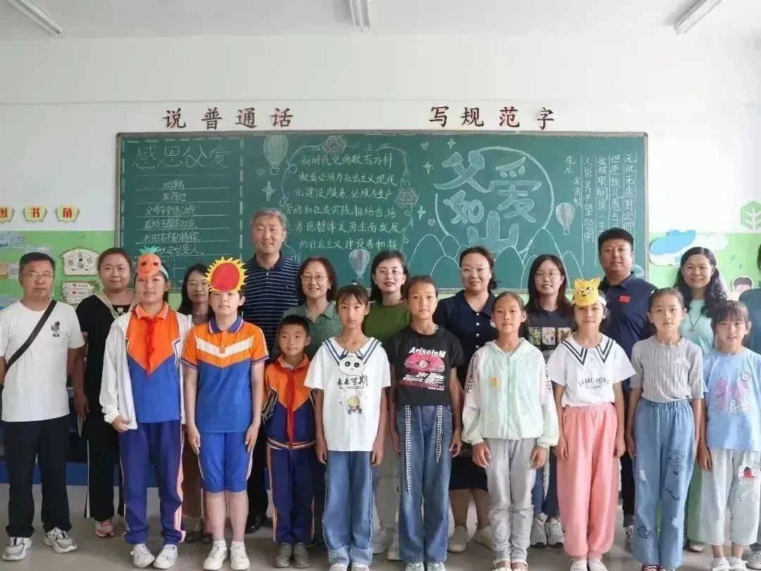 为深入贯彻落实习近平总书记在党的二十大报告中提出的教育理念,让大学生服务乡村振兴,我院师生于2023年7月14日上午在新城区讨思浩小学开展了暑期“三下乡”志愿服务教学展示活动。参加教学展示活动的有我院院长兼党委书记赵晓军、党委副书记、副院长王丹、全体辅导员、22名志愿者同学及讨思浩小学的领导、老师、小学生和家长。