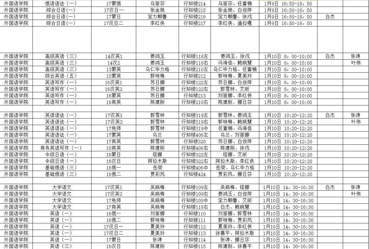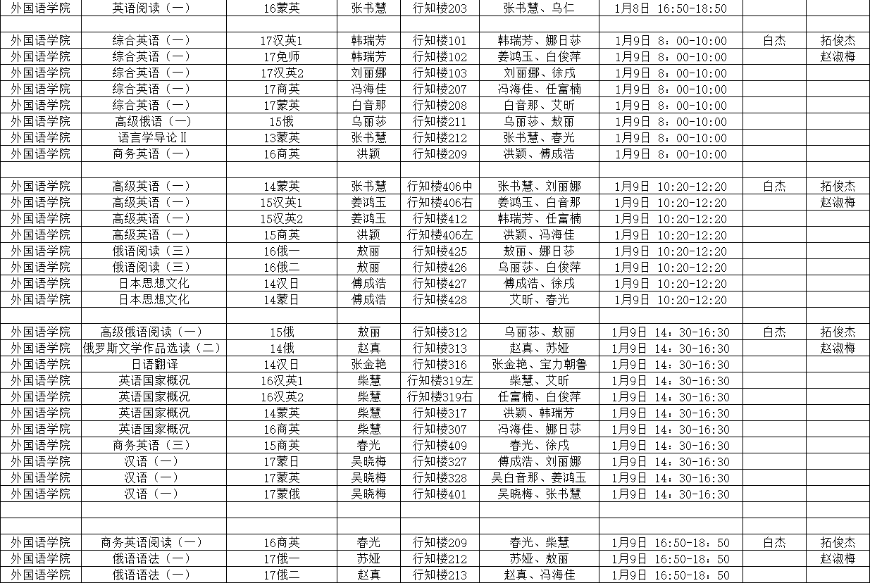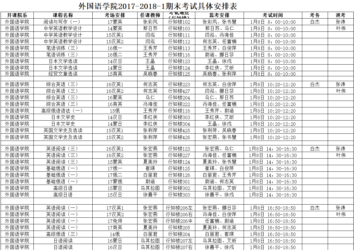 yl23455永利集团专业课 2017-2018-1期末考试具体安排表