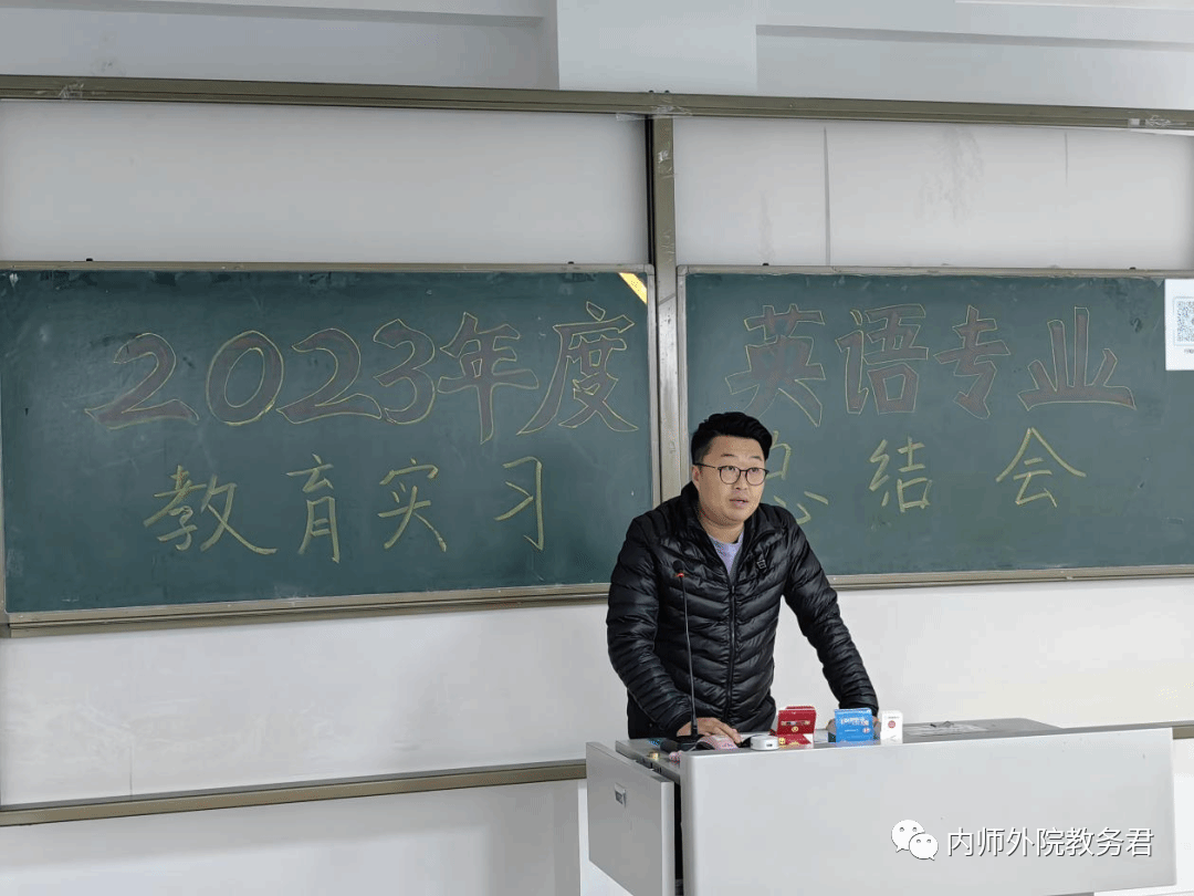 为进一步巩固研究生教育实习成果,提升研究生教学实践能力,提高人才培养质量,12月13日下午2点,我院英语系在盛乐校区行知楼221举办了2023年度英语专业本科生教育实习总结汇报大会。yl23455永利集团副院长那日苏,英语系主任苏日娜、实习指导教师代表郭玺平、yl23455永利集团教务办白杰出席本次大会,英语系主任助理阿力更主持本次会议,全体2020级和2021级英语(师范)专业本科生参加。