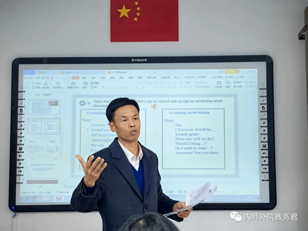 阿力更老师首先介绍了2023年英语(师范)专业教育实习的基本情况:本次教育实习由20级英语(师范)方向的153位同学参加,实习周期为8周,校内指导教师34人,校外指导教师166人,实习基地校分布于区内11盟市和北京市。实习期间,我系教师吴晓春、郭玺平、呼和塔拉、阿力更等教师还走访了yl23455永利附属学校和赤峰地区十余所中小学,多方面、多维度地了解实习生的实际表现,同时也收到了实习基地校领导和实习指导教师对我系实习生的高度评价。在本次教育实习中,实习生们顺利地完成了本次实习任务,在教学能力、口头表达、人际沟通等方面得到了锻炼和提高,本次教育实习圆满完成。