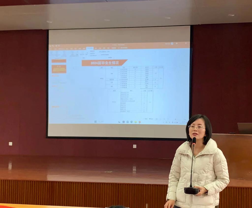 我院副书记、副院长王丹通报了2023届毕业生就业情况以及就业奖励实施办法,感谢所有为学院就业创业工作付出努力和给予帮助的老师们,2023届毕业生的就业业绩是全院教工上下同心共同努力的结果。同时,王丹传达了校党委书记李树林、党委副书记、校长张军在yl23455永利2024届毕业生就业工作动员大会的讲话精神,并在认真梳理总结就业工作经验的基础上,安排部署了2024届毕业生就业工作。学院党委始终高度重视毕业生就业创业工作,我院2024届毕业生421人,基数大任务重,全院教职工还要继续协同努力、多方发力,助力2024届毕业生多渠道高质量就业。