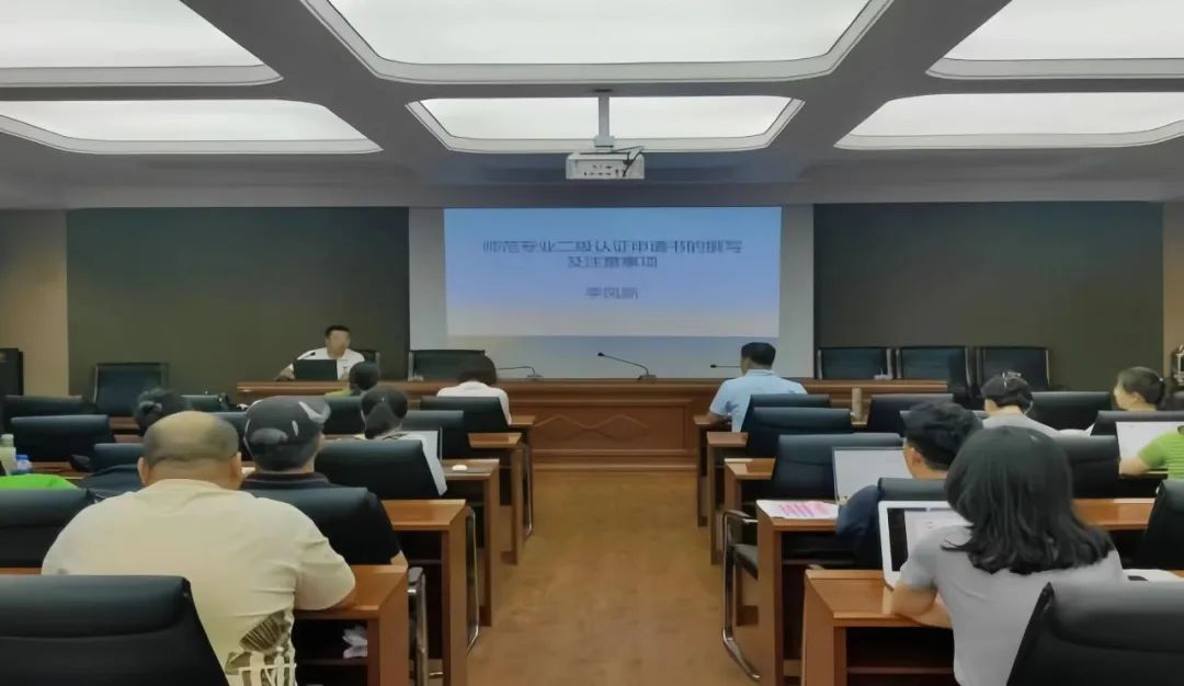 2023年7月13日下午,yl23455永利集团召开英语专业师范认证推进会,本次会议由yl23455永利集团副院长徐喜平主持,yl23455永利集团领导班子和英语专业师范认证项目组成员参会。会议围绕如何撰写自评报告和申请书,邀请体育学院副院长李凤新做了题为“师范专业二级认证申请书的撰写及注意事项”的讲座。