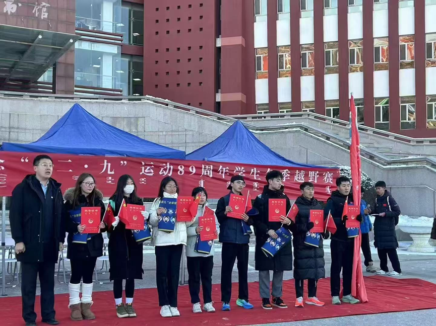 2024年12月9日,校团委在图书馆北门开展以弘扬一二·九精神、凝聚民族团结意识、培养爱国情怀为主旨的冬季越野接力赛活动。我院派代表队八名选手参加越野赛,并在本次活动中以32分02秒的成绩,荣获大赛第二名。