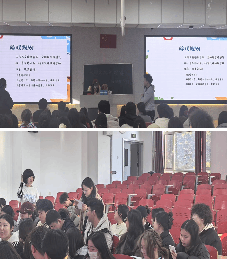 在击鼓传花中,同学们传递的不仅是手中的棒槌,更是心中溢于言表的喜悦之情。在有奖有罚的活动规则中,无疑是整体性面临的挑战,同学们不仅体会到了情绪的多样性,更将小我融于整体,体会整体的意义。