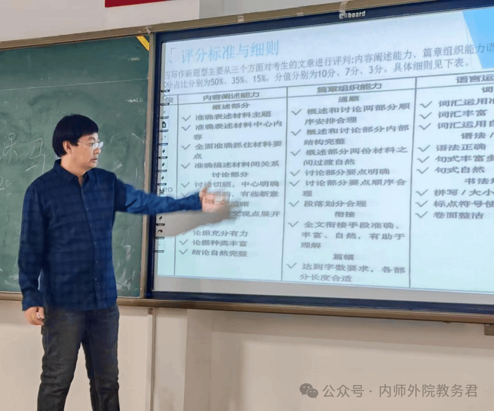 郭雪林老师从专四写作的测试要求、评分标准及评分细则入手,详细分析了考试对篇章组织与语言运用能力的要求。他结合实例重点讲解了材料类作文的写作方法,从提取中心句到仿写技巧,逐一拆解写作过程中的关键环节,帮助同学们掌握高分作文的写作思路与技巧。
