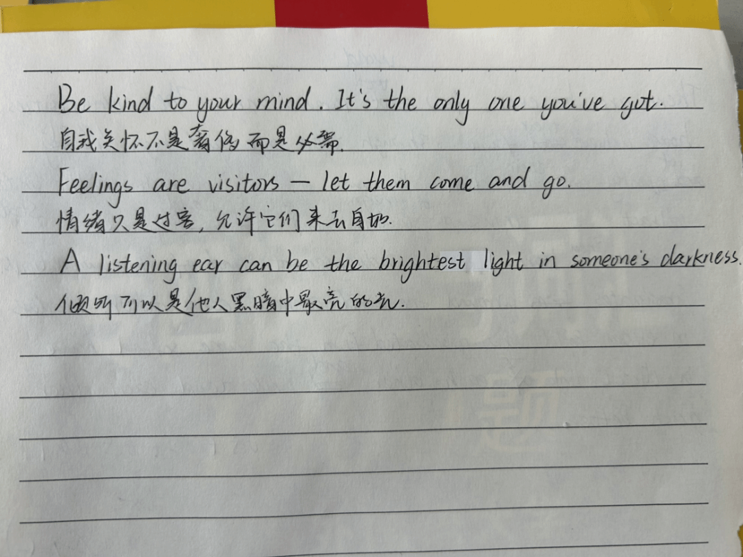 通过本次作品征集活动,同学们以富有专业特色的标语为媒介,搭建起与自我对话的桥梁。每一句充满共鸣的话语,都像是一盏明灯,照亮内心的角落,让情感找到归属。这些贴近生活的语言,不仅助力同学们找到情绪的出口,重拾生活的热忱,更在群体中形成互帮互助的温暖氛围,共同提升心理韧性,为建设健康和谐的校园注入鲜活力量。