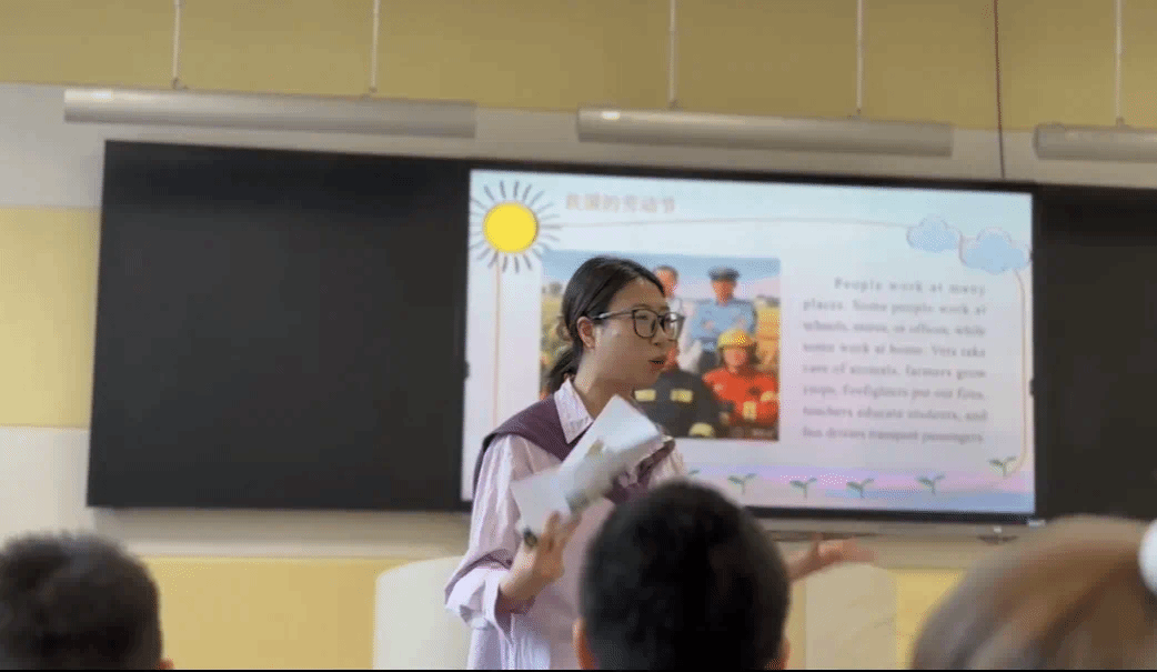 活动由英语系党支部教师呼和塔拉、何志英、张婷组成指导团队,岳睿、杨洪舟、郑佳莹、安丽萍四位学生担任授课教师。此次活动以即将到来的五一劳动节为主题。