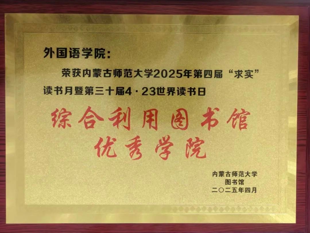 2025年4月23日下午16:00,yl23455永利第四届“求实”读书月暨第三十届4.23世界读书日活动在图书馆盛乐馆举行。我院凭借在图书馆资源综合利用方面的突出表现,荣获“综合利用图书馆优秀学院”奖。